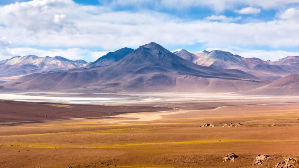 The Atacama Desert is the driest non-polar desert in the world. It runs along Chile’s Pacific coast. This amazing area has landscapes that look more like Mars than Earth. It has beautiful salt flats, colorful lagoons, geysers, and rock formations that look like they came from another world. The Atacama is very dry, but it is full of interesting plants and animals, as well as cultural and scientific importance.