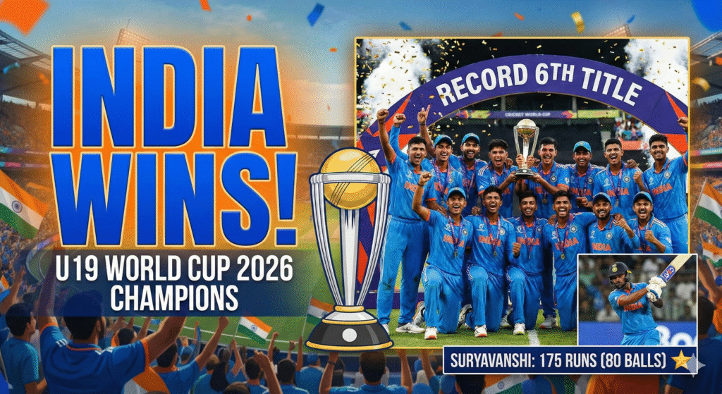 The Indian Under-19 cricket team made history again on a Friday at the Harare Sports Club in Zimbabwe. India beat England by 100 runs to win the ICC Men’s U19 World Cup 2026.